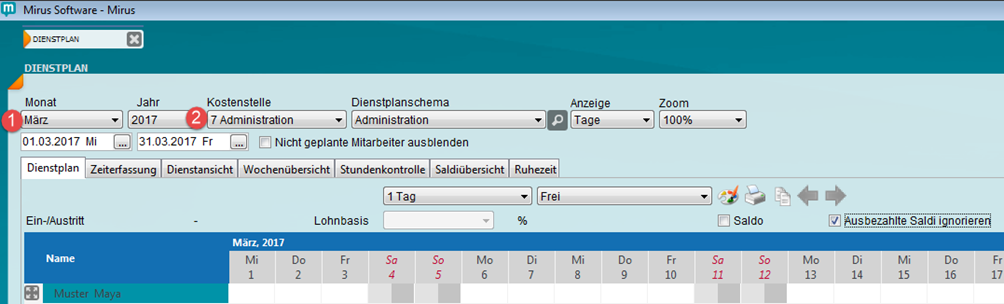 Im Dienstplan werden sämtliche Anwesenheiten (Dienste) und Abwesenheiten der Mitarbeitenden geplant.