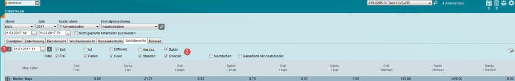 Vor dem Eintragen der An- und Abwesenheiten können die Saldi der einzelnen Mitarbeitenden konsultiert werden.