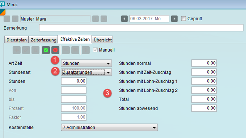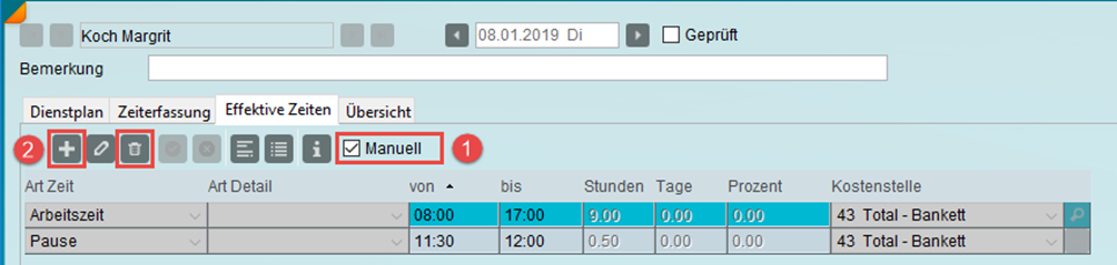- Effektive Zeiten (manuelle Erfassung)