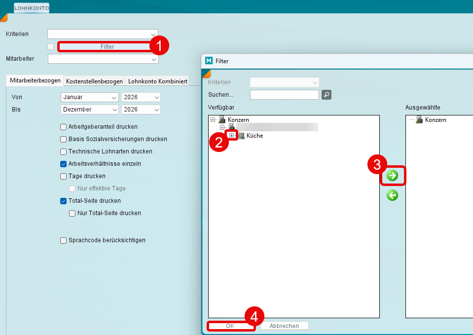 Wenn Sie die Auswertung nicht für die ganze Firma, sondern nur für bestimmte Mitarbeitende benötigen: