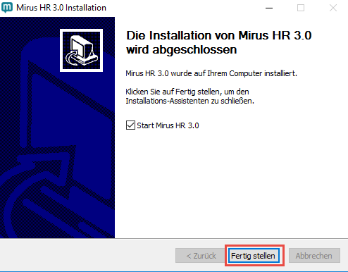 - Schliessen Sie die Installation mit Fertigstellen ab.