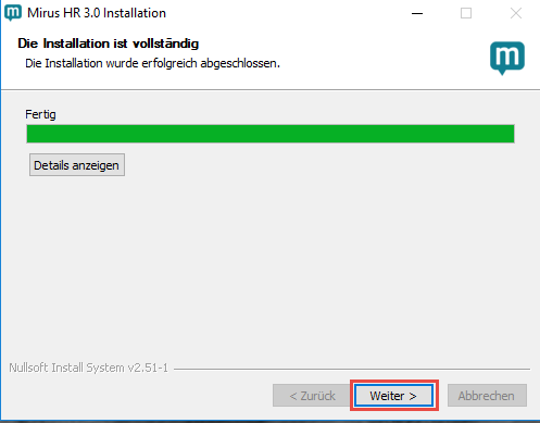 - Klicken Sie nach Abschluss der Installation auf Weiter.