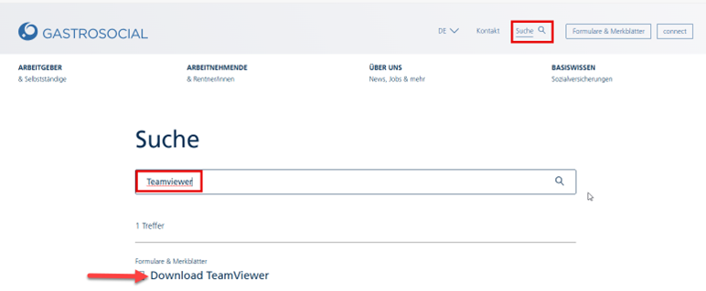 2. Suchen Sie oben rechts mit der Lupe nach "TeamViewer"