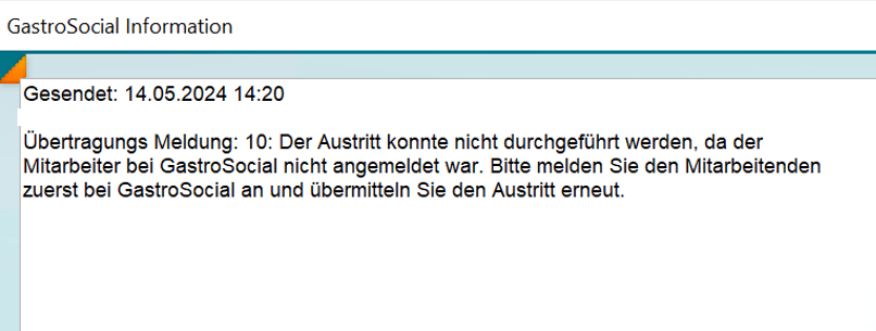 Senden Sie uns bitte die Fehlermeldung zu (support@gastrosocial.ch). Wir benötigen dazu die Sozialversicherungsnummer und das Eintrittsdatum des Mitarbeitenden.
