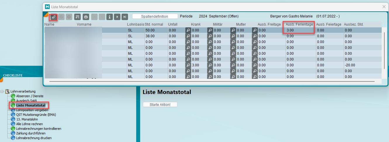 In der Lohnverarbeitung unter "Liste Monatstotal" sind die ausbezahlenden Saldi zu erfassen welche aus der Zeiterfassung entstehen wie z.B.