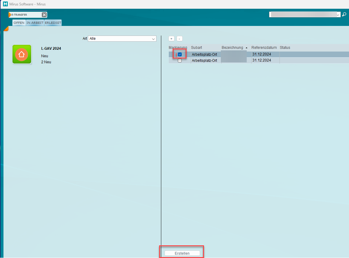 - Wenn Sie pro Arbeitsplatz-Ort eine eigene Rechnungsnummer und einen Zugangscode erhalten haben, erstellen Sie die Übermittlung pro Arbeitsplatz-Ort.