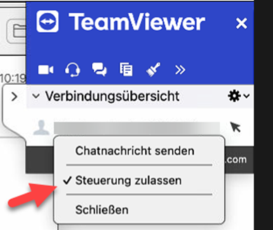 - Klicken sie auf "Steuerung zulassen", um dem Support den Zugriff zu ermöglichen.