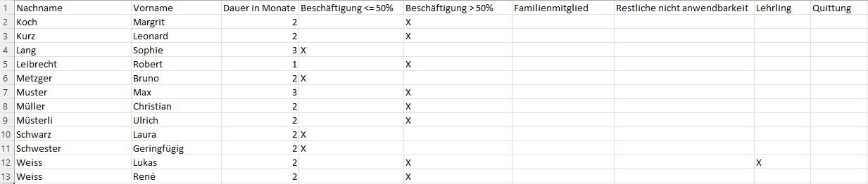 In der Excel-Tabelle sind die Informationen enthalten, welche Sie in die Deklaration der L-GAV-Kontrollstelle übertragen können.
