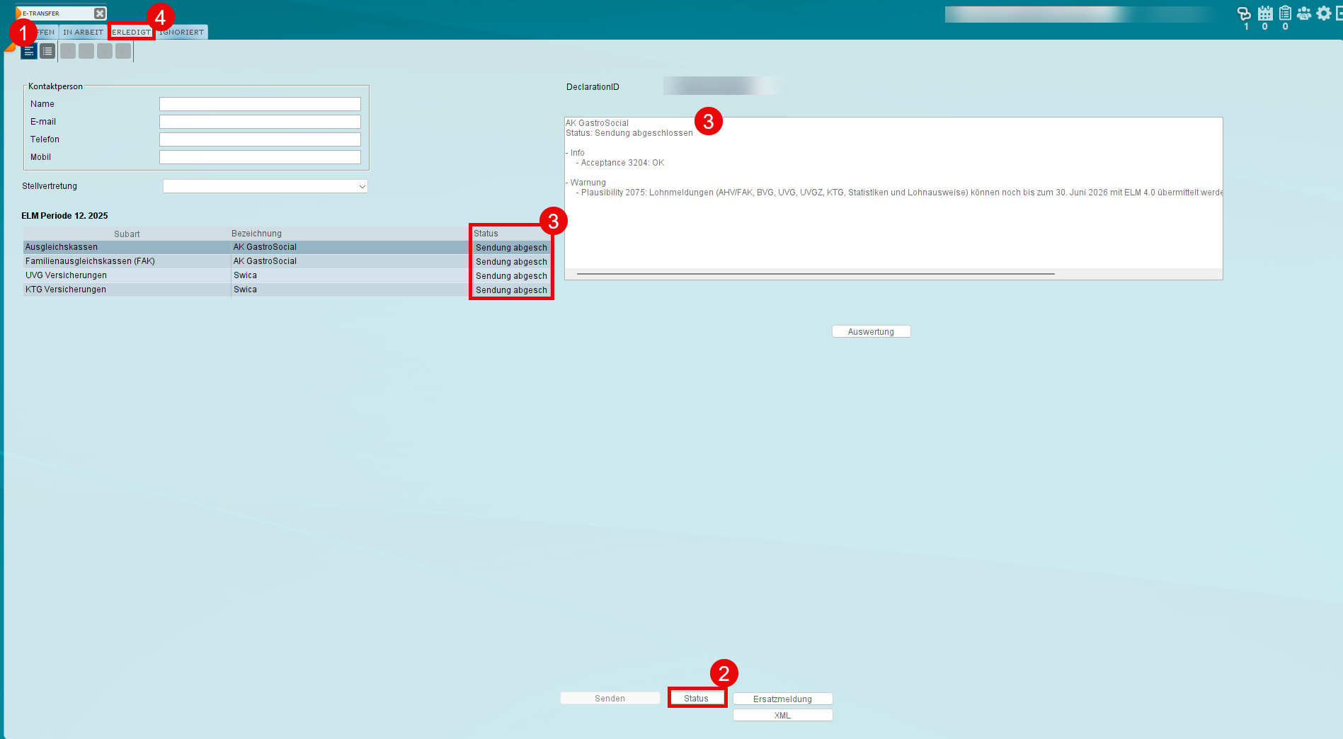 Die Meldung erscheint anschliessend unter "Erledigt" im E-Transfer.