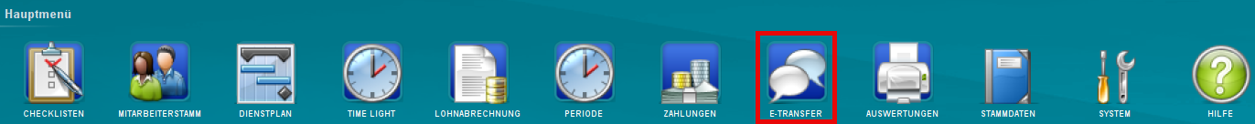 Wenn Sie alle Fragen mit «Ja» beantworten konnten, starten Sie die Lohndatenübermittlung über den Haupt-Menüpunkt «E-Transfer».