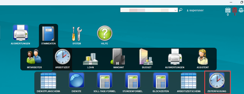 Pour importer, sélectionnez le menu "Données de base", puis "Temps de travail".