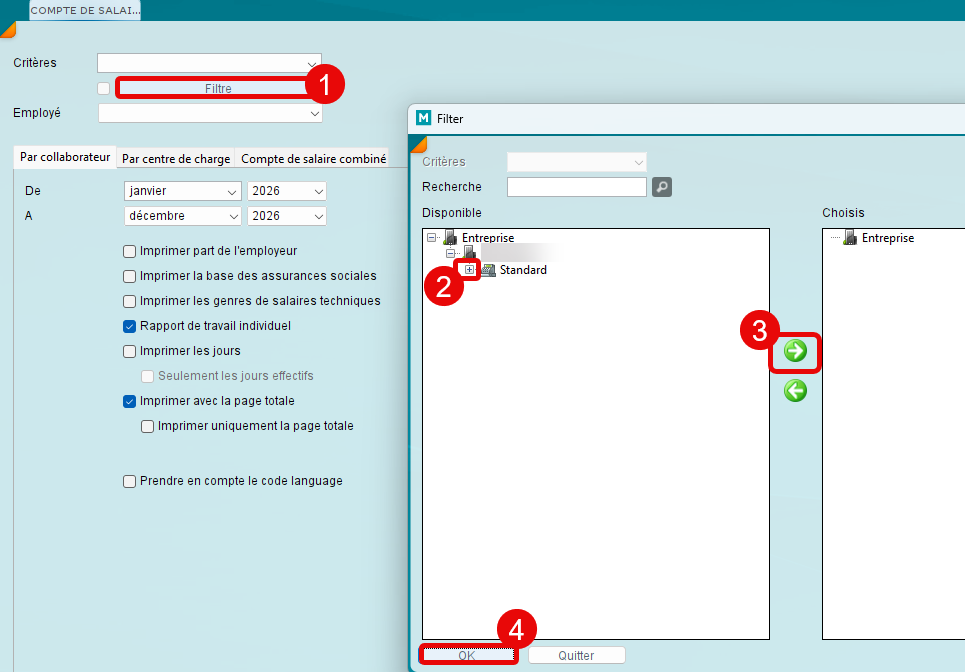 - Déplacez les collaborateurs souhaités dans la sélection à l’aide de la flèche.