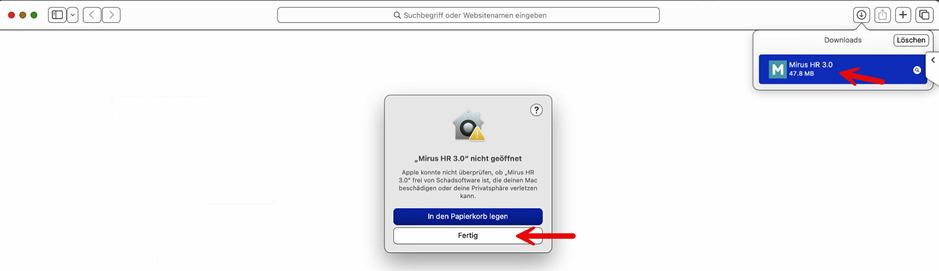 - Si plusieurs clients (avec des liens d'accès différents) sont installés sur le même Mac, l'application doit être renommée du nom «Mirus HR 3.0» à un autre nom après chaque installation réussie, sinon elle sera invalid lors de l'installation suivante.