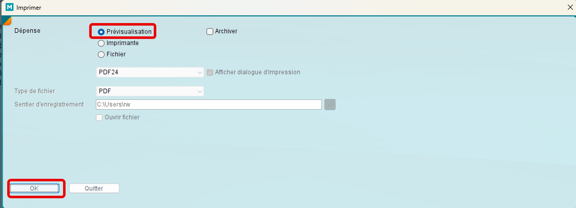 Imprimez et vérifiez la prévisualisation, qui est prédéfinie par défaut.