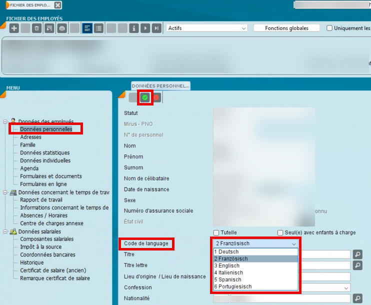 Dans miruSocial, vous pouvez définir une langue individuelle pour chaque collaboratrice et chaque collaborateur. Vous vous assurez ainsi que le bulletin de salaire est généré en allemand, italien ou français. Dans cet article, vous apprendrez où trouver ce paramètre et comment sélectionner correctement le code de langue.