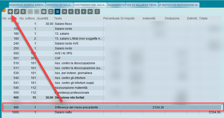 Una «Differenza mese precedente» si verifica, ad esempio, quando dopo l’esecuzione del pagamento vengono effettuate ulteriori modifiche rilevanti ai fini salariali (vedi Come vengono elaborati i salari ogni mese?), come: