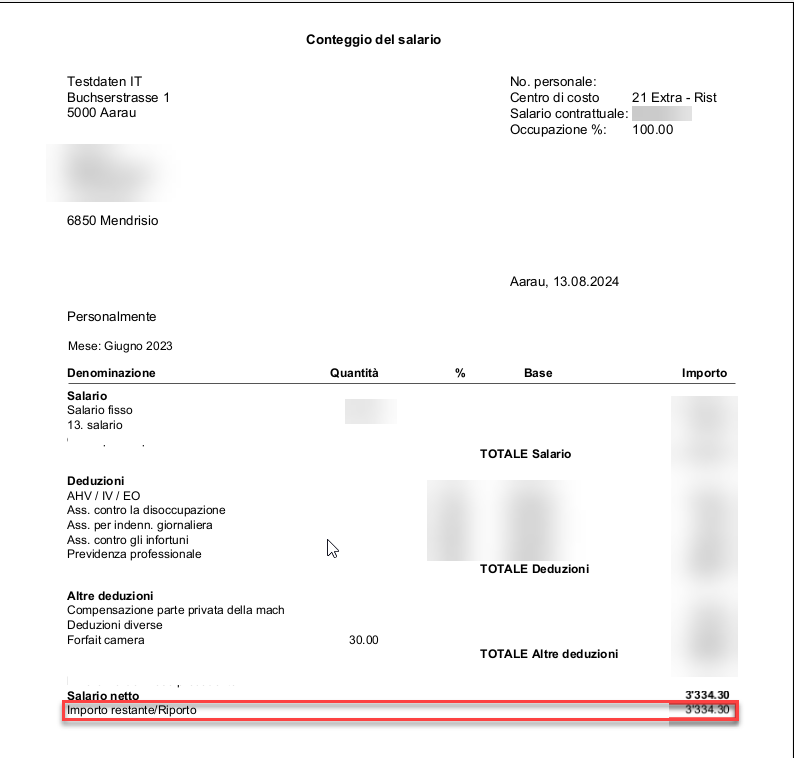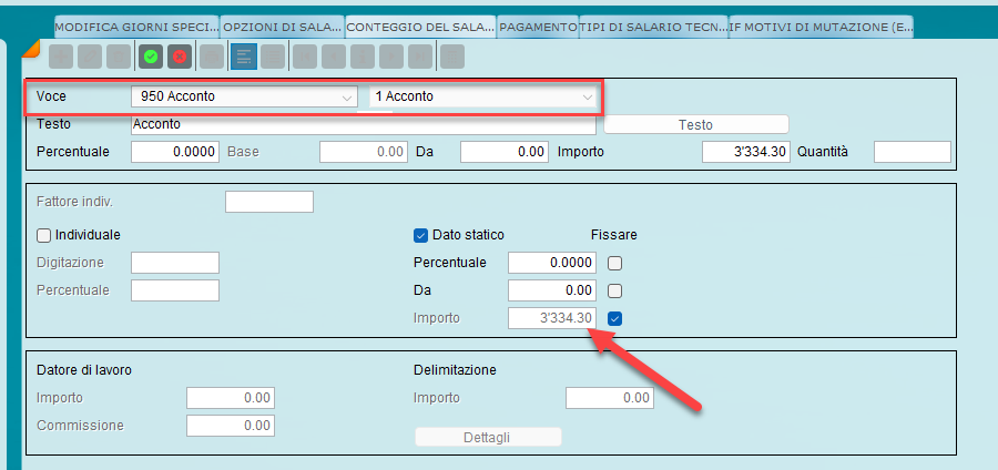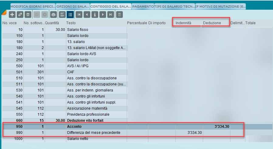 Dopo l’inserimento, la differenza viene compensata nel conteggio salariale.