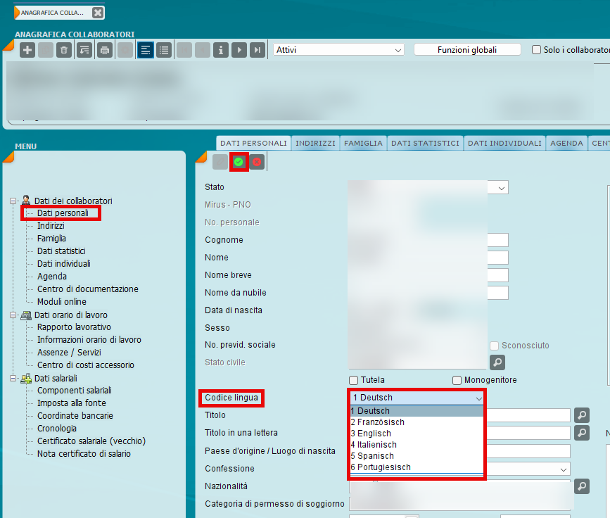 In miruSocial può impostare una lingua individuale per ogni collaboratrice e collaboratore. In questo modo si assicura che la busta paga venga generata in tedesco, italiano o francese. In questo articolo scoprirà dove si trova l’impostazione e come selezionare correttamente il codice lingua.