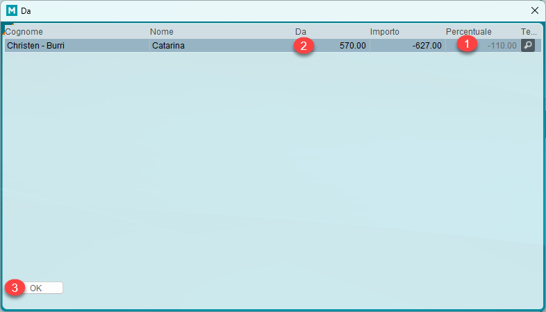 1. Inserire nel campo “Percentuale ”110 con un segno negativo